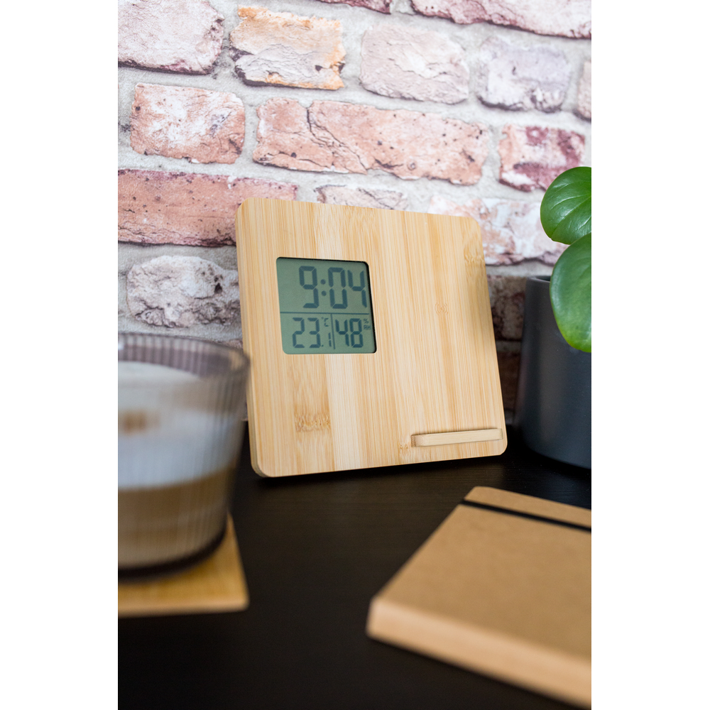 Erleben Sie mit unserem kabellosen Ladegerät aus Bambus den perfekten Imageträger für Ihre Marke. Mit seinen kompakten Maßen von 18 x 17 x 2,3 cm und einem Gewicht von nur 250 g ist es nicht nur funktional, sondern auch ein stylisches Accessoire auf jedem Schreibtisch. Die exquisite Lasergravur Ihrer Marke sorgt für eine langfristige Sichtbarkeit, während die integrierte Wetterstation, Uhr, Thermometer und Hygrometer den Alltag Ihrer Kunden erleichtert. Dank der induktiven Ladefunktion mit 10W und der Möglichkeit, als Telefonständer zu dienen, genießen Ihre Geschäftspartner einen klaren Nutzungsvorteil.