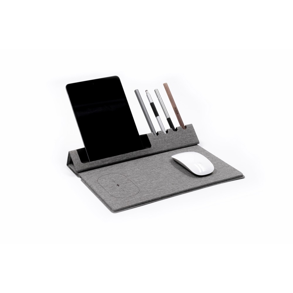 Erleben Sie mit dem kabellosen Ladegerät Evopad Charge die perfekte Symbiose aus funktionalem Design und stilvollem Branding. Dieses kompakte Multitalent vereint Ladegerät, Mauspad, Telefon- und Stifthalter in einem und wird so zum unverzichtbaren Begleiter im Büroalltag. Dank hochwertiger Materialien wie RPET und Polyester senden Sie eine klare Botschaft für Nachhaltigkeit und Innovationskraft.