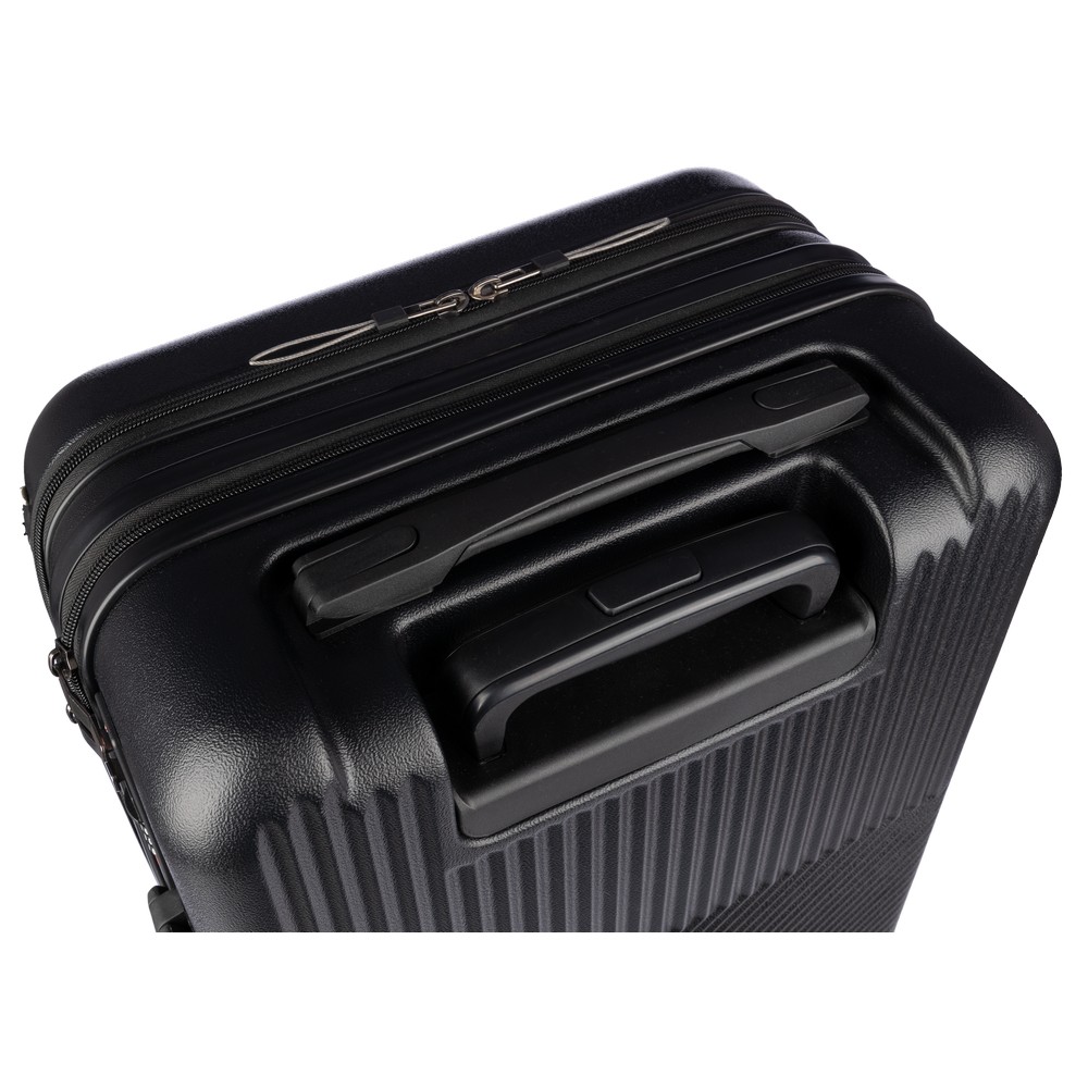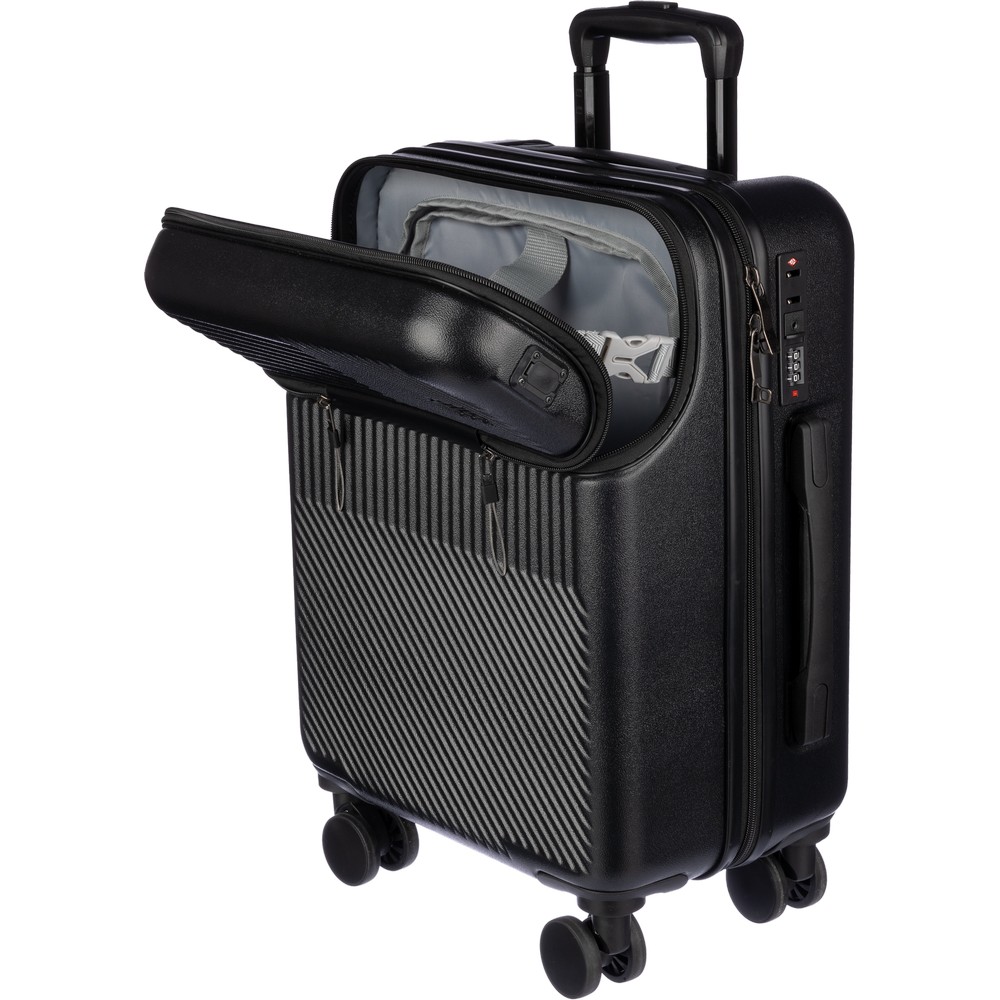 Erleben Sie mit unserem individuell branded Reisekoffer den perfekten Imageträger für Ihre Marke. Mit einem robusten Design aus hochwertigem ABS und einem durchdachten 8-Rollen-System bietet dieser Koffer nicht nur erstklassige Mobilität, sondern auch eine stilvolle Präsentation. Die zippbare Laptop-Tasche an der Vorderseite erleichtert das Reisen, sei es mit dem Coach, Zug, Auto oder Flugzeug.